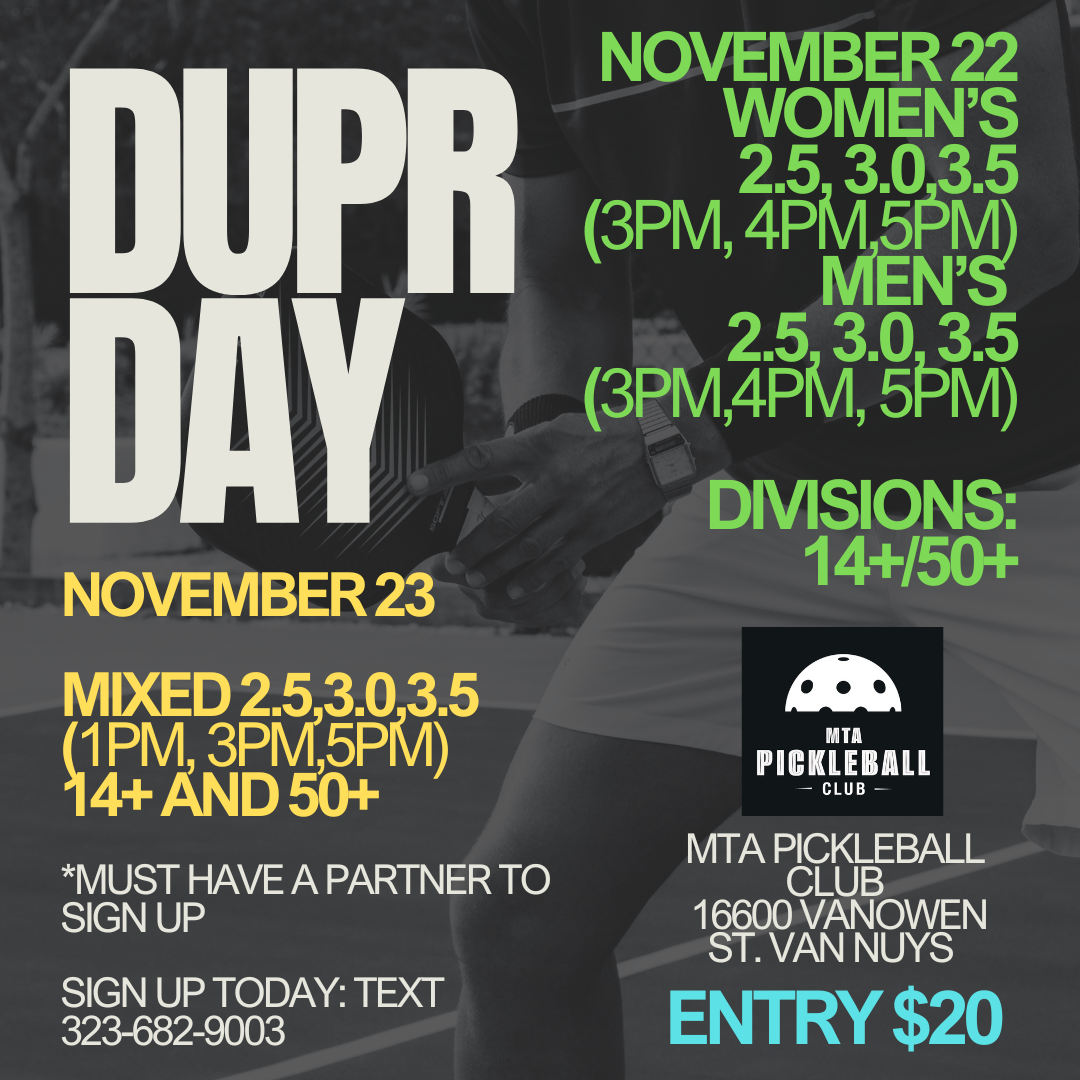DUPR DAY gives you quality matches, guaranteed playtime, and a great way to track your progress while meeting new players in a competitive but fun environment.