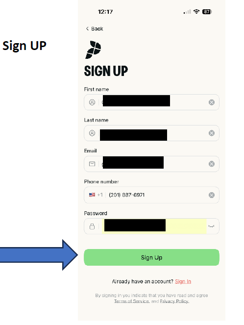Tap Sign Up to create your account.